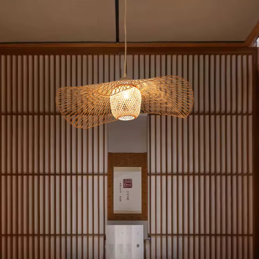 Suspension Vertigo en rotin et lampe de table : style bohème et atmosphère chaleureuse